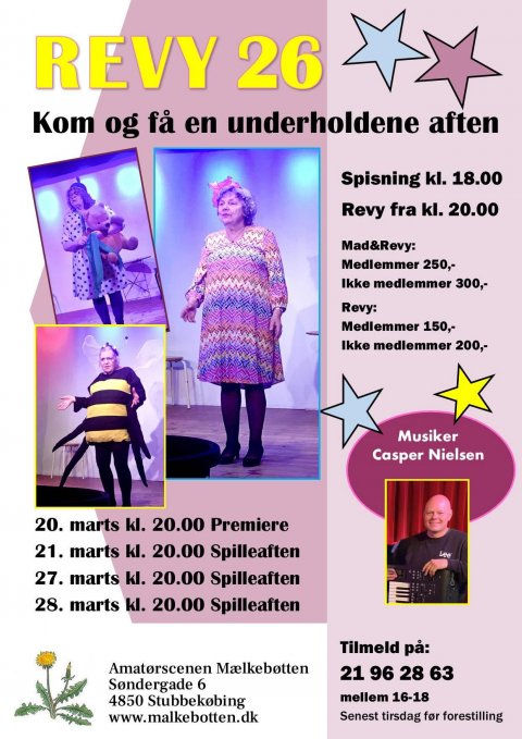 Her kan du finde de sidste nyheder fra Amatørscenen Mælkebøtten. Vi holder til i vores dejlige lokaler i Søndergade 6, 4850 Stubbekøbing.